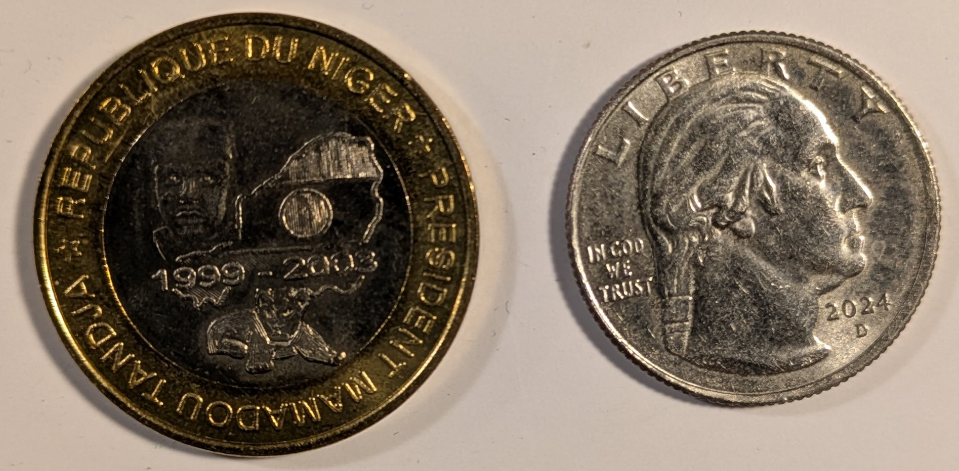 NIGER, West African States ~ 2003 ~ 6000 CFA Francs ~ Bimetallic ~ President Mamadou Tanja ~ Elephant, Map of Africa ~ Low mintage ~ KM-14 ~ BU